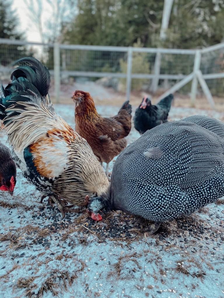 If we raise them with some chicks, I think they would be able to integrate into the flock just fine. I’ve heard of some mixed flocks having issues with the guineas bullying the chickens. We haven’t had that issue, and I think if the guineas have enough room and options for free ranging, they can cohabitate just fine.