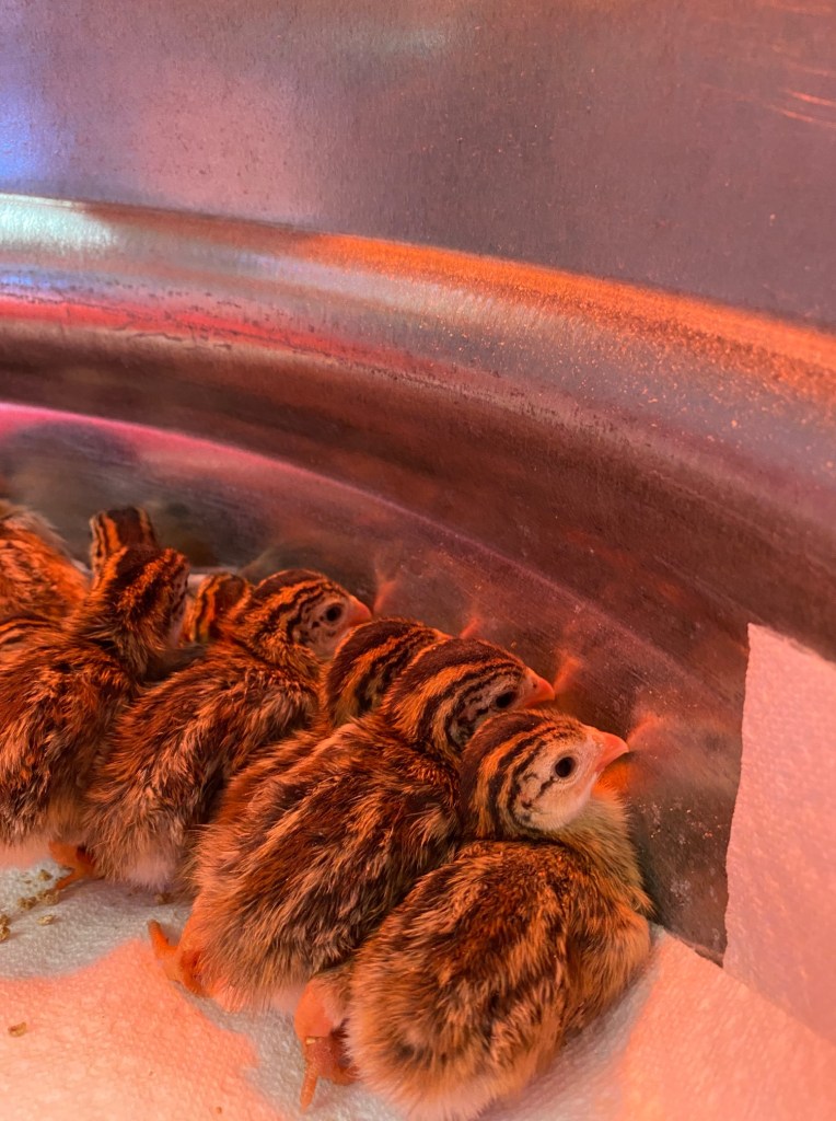 In spring of 2021, we picked up 15 keets (baby guineas) from a local farm. The keets were noticeably more “wild” than chicks. Reaching in to fill and change the food and water or change the bedding, they would quickly huddle in the opposite corner, jumping over each other to get away from us. Moving them from the brooder to the smaller temporary coop outside, it was much more difficult to catch and move them than it is chickens.